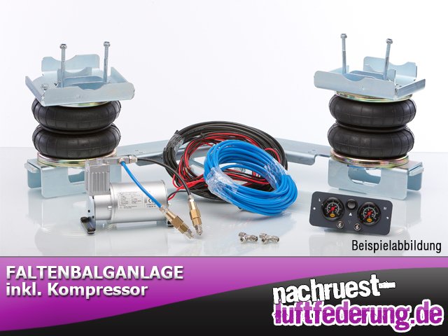 Es handelt sich bei diesem Produkt um einen Komplettsatz welcher zur bereits vorhandenen Hinterachsfederung verbaut wird. Diese Luftfedern inkl. Kompressor und 2-Kreis Bedieneinheit sowie allen weiteren Zubehörteilen die zum Einbau benötigt werden sind für alle Mazda B2500 4x4 Modelle ab Baujahr 1998-2006 passend. Durch den Einbau einer Nachrüst- bzw. Zusatzluftfederung können Sie das Fahrzeugheck auf Wunsch hochpumpen bzw. die Federung immer optimal auf den gerade anliegenden Beladungszustand anpassen. Bei Fragen hierzu stehen wir Ihnen gerne zur Verfügung!